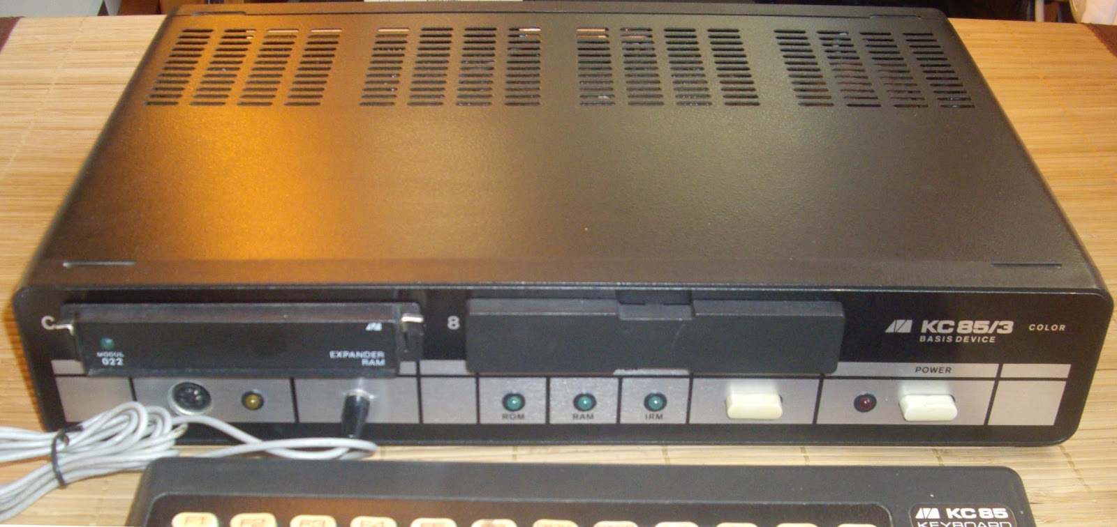 Actualización de información: VEB Mikroelektronik KC 85/3 (1987). A principios de 1984, Robotron tenía en desarrollo dos proyectos: el proyecto Z 9001 y el HC 900. En el segundo semestre de 1984, Robotron introdujo en el mercado la línea Z 9001 y a finales de año VEB Mikroelektronik la serie HC 900. Los dos proyectos tenían el mismo procesador U880D (clon del Z80) pero con diferente concepto de empleo. El resultado del proyecto) Z 9001 fue un ordenador compacto con el teclado integrado en la carcasa del ordenador y relativamente asequible, mientras que el resultado del proyecto HC 900 fue un ordenador con unidad de sobremesa, teclado independiente, diseño modular con muchas posibilidades de expansión (con paso a través) y verdaderos gráficos en color RGB. Al año siguiente (1985) salió al mercado el el KC 85/2 (KC de "Klein Computer" y 85 del año en curso). La denominación "KC 85/1" se había asignado previamente al ordenador de la serie Z 9001 que había salido a la venta ese mismo año. Le siguieron el KC 85/3 en 1987 (coincidiendo con el KC 87) y el KC 85/4 en 1988. El KC 85/3 fue el primer ordenador de la serie con el BASIC incluido en la ROM, que se había ampliado de 4K a 16K.